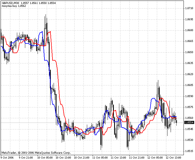 青い線が赤い線と下から上に交わる場合は、ロングポジションを開く必要があります。逆の場合は、ショートポジションを開くべきです。
