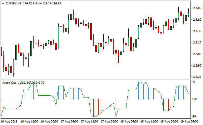 MetaTrader4用のAroon Oscillator v1インジケータは、Tushar Chandeによって開発されたインジケータであり、新しい傾向の形成を見分ける能力とそのような傾向の勢いを定義する能力を備えています。