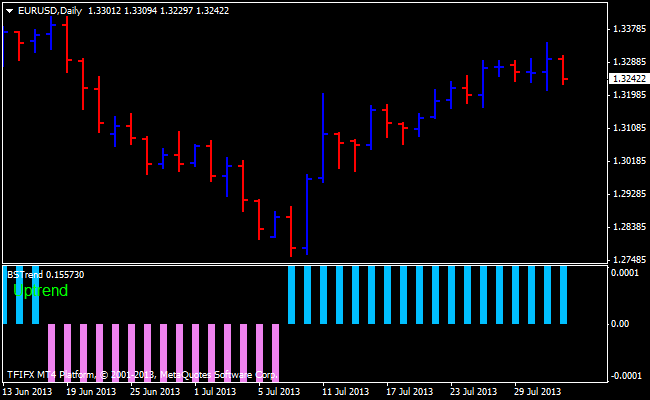 BSTrendインジケータには、すべての通貨ペアの通貨動向が表示されます。 青色のバーは上昇トレンド(0.0001)を示します。 紫色の棒は下降トレンド(-0.0001)を示します。