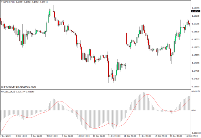 バーと線の関係も勢いの方向を示しています。勢いは、バーがラインより上にあるときは強気であり、バーがラインより下にあるときは弱気です。