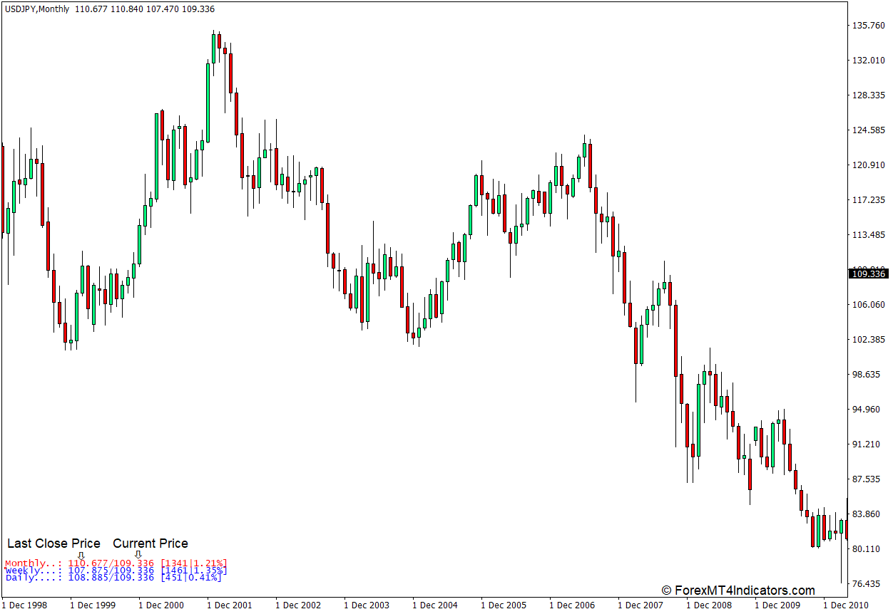 現在の価格と最後の終値の両方が、ブローカーの価格フィードからインジケーターのアルゴリズムによって取得されます。